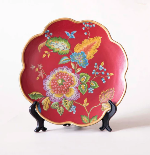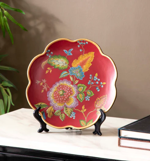 Handmade Metal Fish Dish for Weddings and Parties Enamel Printed Plate with Polished Plant Pattern for Birthdays Dinner Events