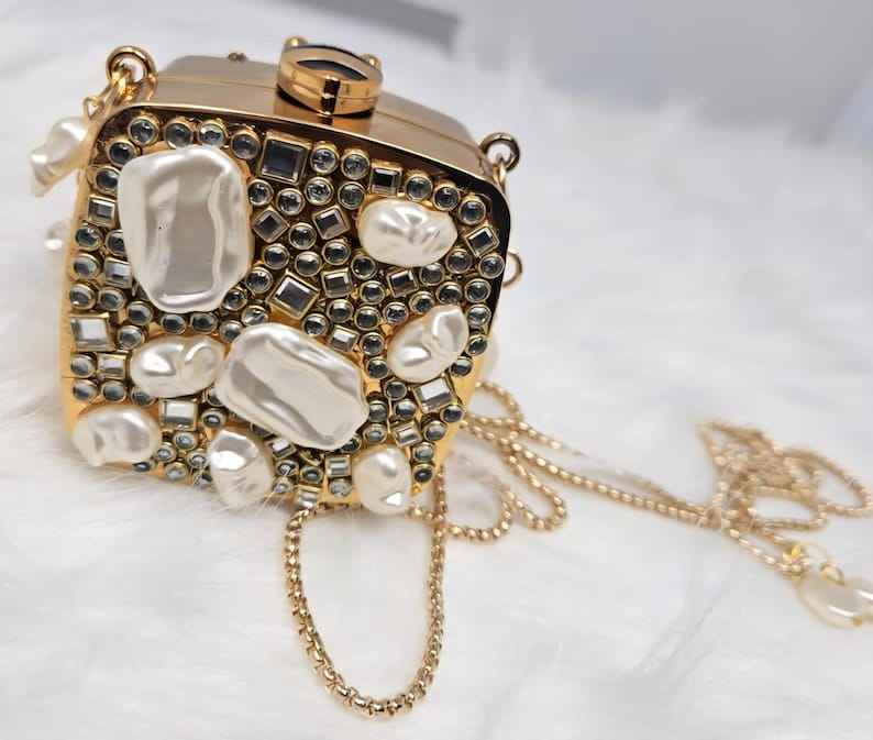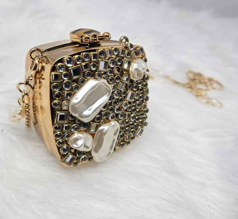 Fashionable Luxury Metallic Clutch For Women Crafted For Elegant Evening Events Designer Inspired Purse With Chain Strap