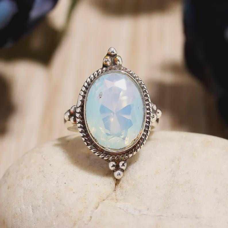 Keyword:Milky Opal 925 Sliver Made With multi fire Milky Opal Ring