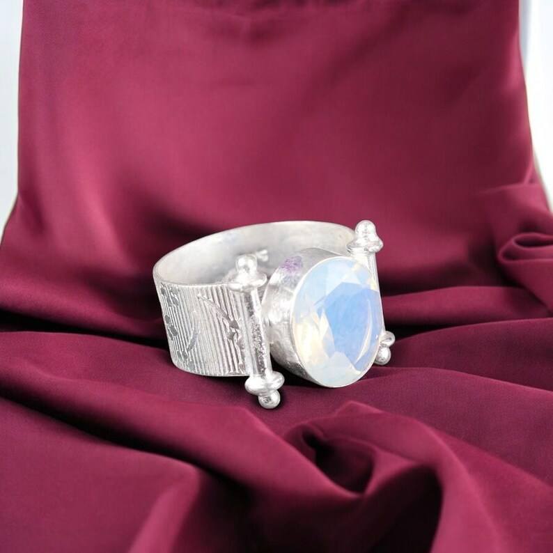 Keyword:Milky Opal 925 Sliver Made With multi fire Milky Opal Ring