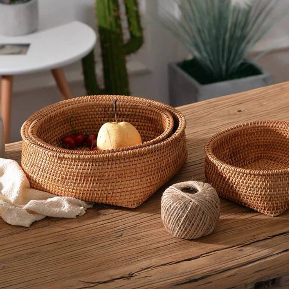 Handmade Mini Basket Bowls Sustainable Eco Natural Rattan Nesting Bowl Set Customization Private Brand Accepted