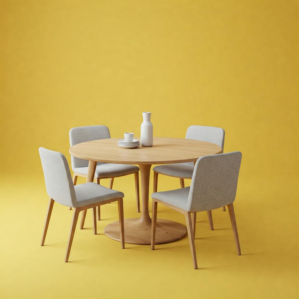 Handmade Minimalist 4 Round Seater Solid Wood Dining Table Set Assembled for Hotels Schools Villas Courtyards