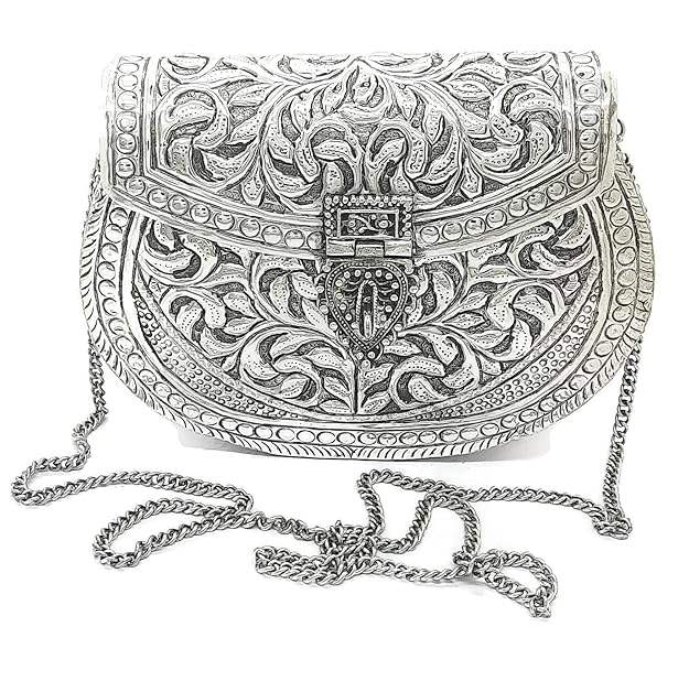 Handmade Minimalist Brass Designer clutch bag with elegant crystal embellishments For modern Women At Low Coast By HF CRAFTS