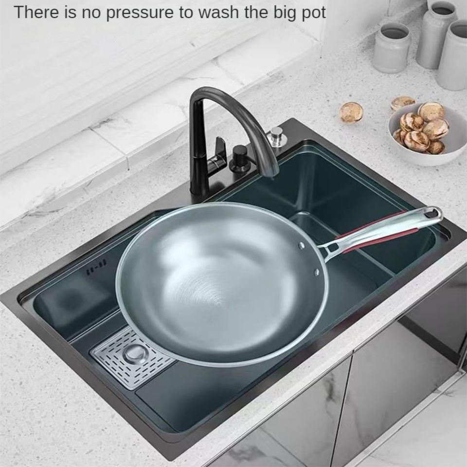 Handmade Modern Commercial Kitchen Sink 304 Stainless Steel Single & Double Bowl Nano Surface Multifunctional Square Wash Basin