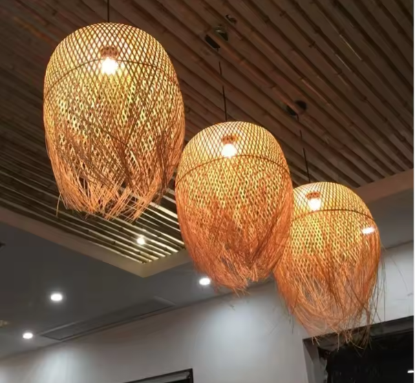 Handmade Modern Decor Bamboo Cage Seagrass Lamp Shade 45*62CM Oval Shape High Grade Bamboo Woven Pendant Light