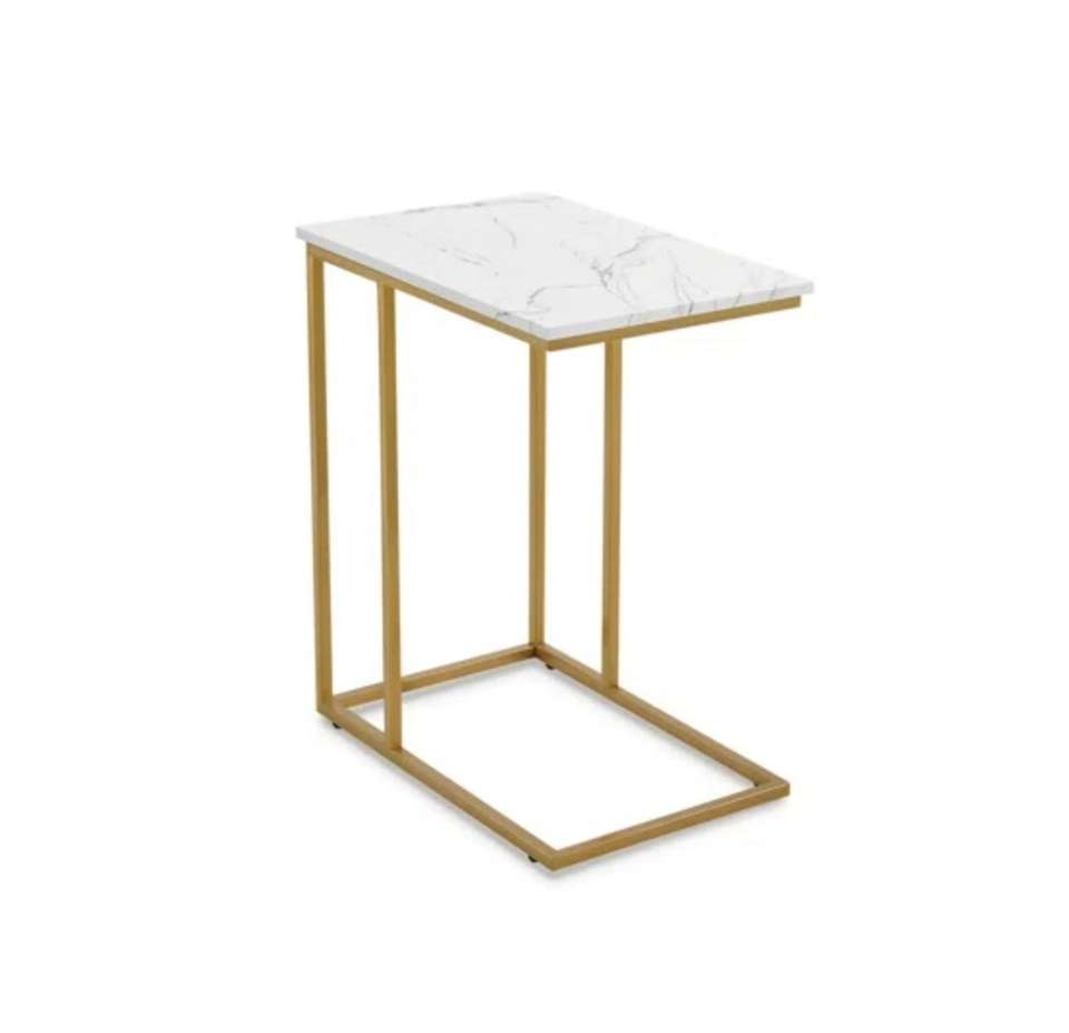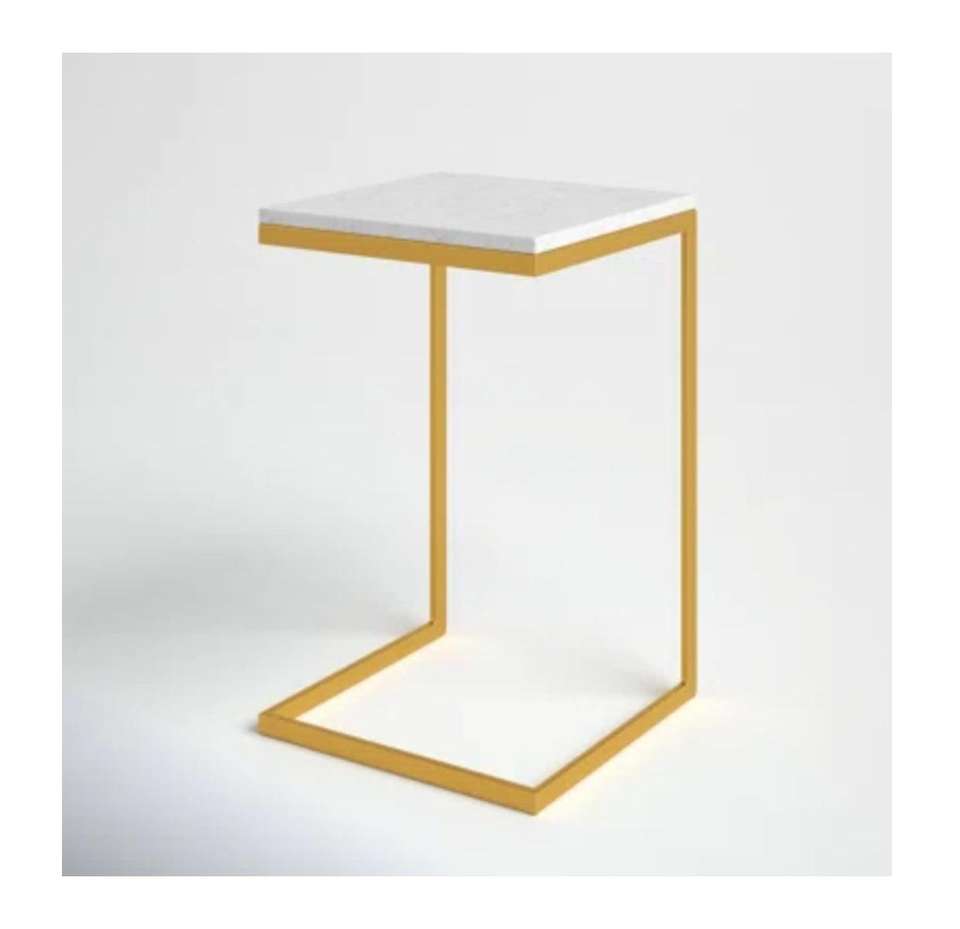 Handmade Modern Design Nesting End Table Bed C-Side Shape White Wood with Marble Top Coffee Table for Living Room Furniture