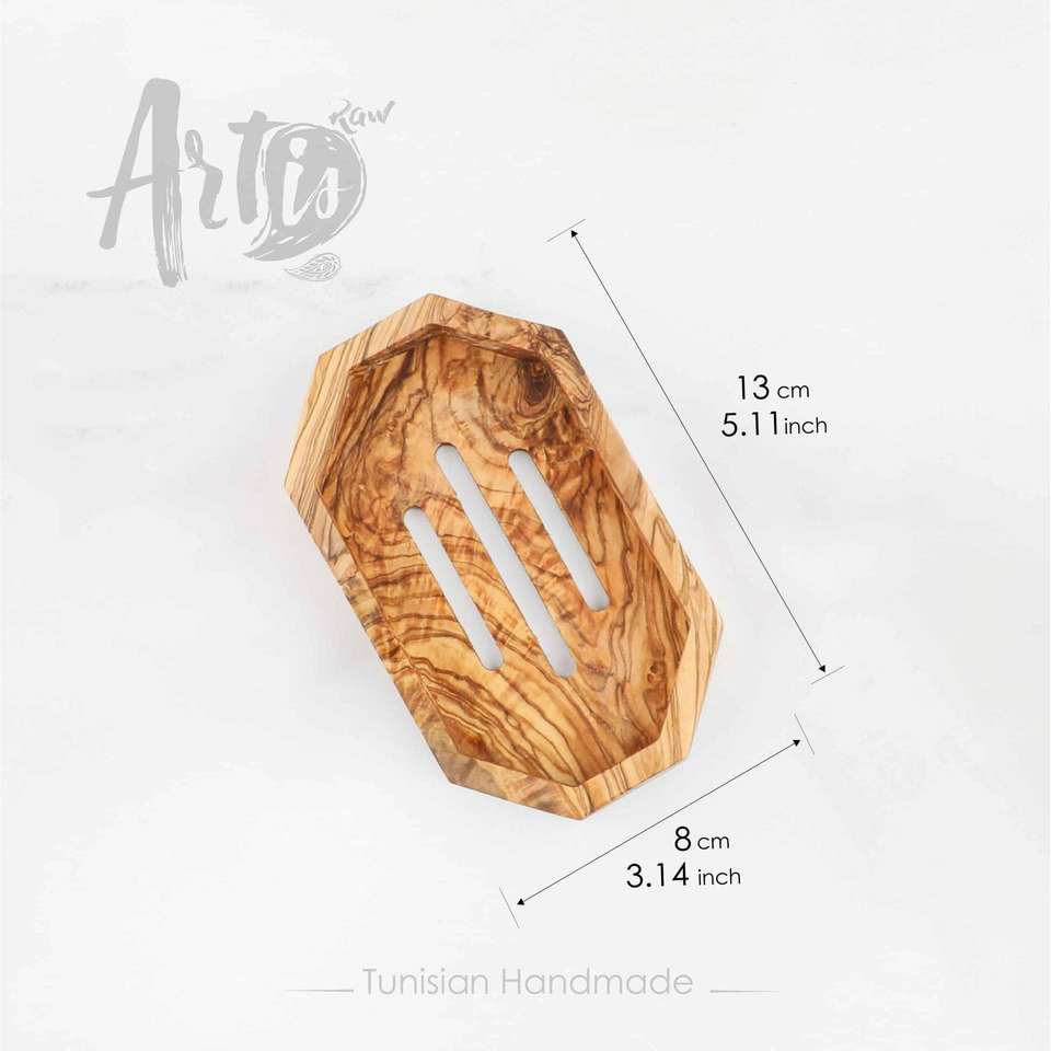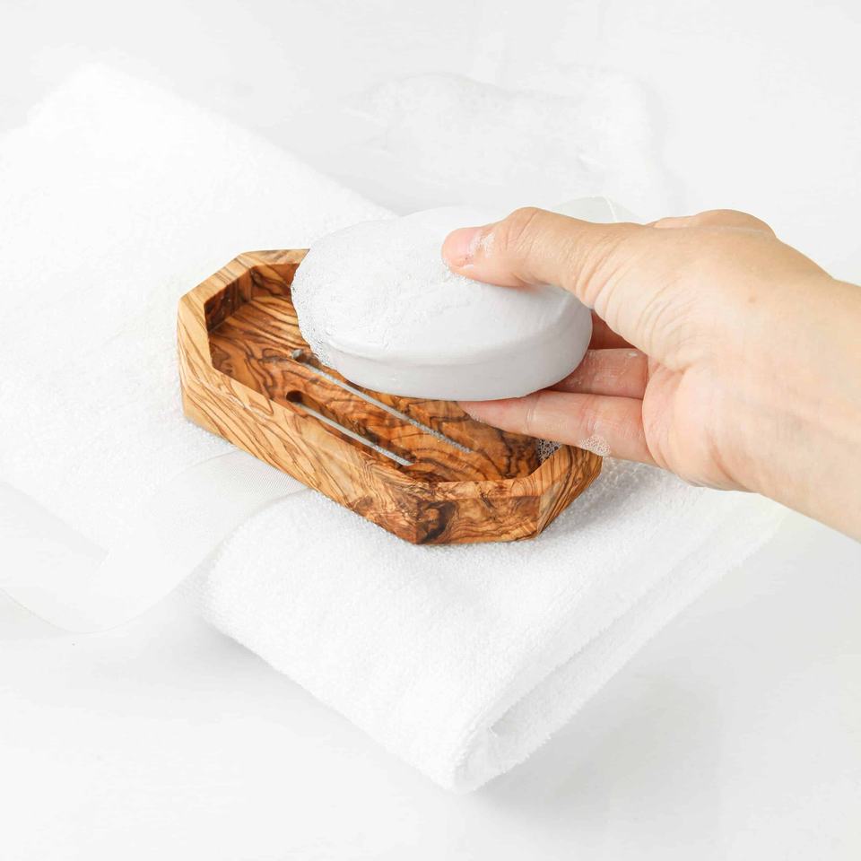 Handmade Modern Design Olive Wood Soap Tray Natural Finish Wooden Soap Dish With Drain Slots for Bathroom or Kitchen Sink