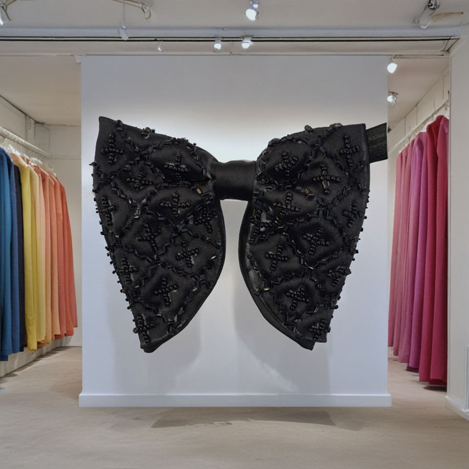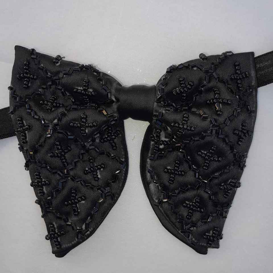 Handmade Modern Embroidered Black Butterfly Satin Tie for Men Adjustable Banquets Accessory in Solid Black Silk Cravats Bow Tie