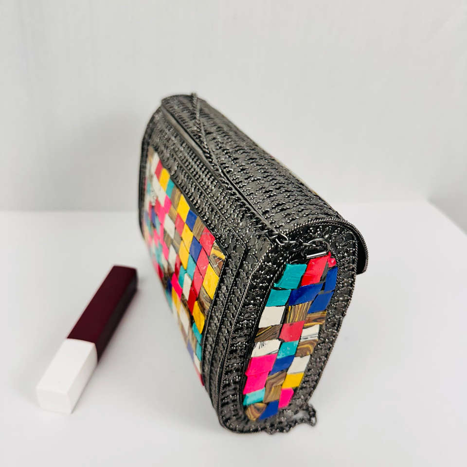 Handmade Modern Ethnic Antique Style Silver Metal Mosaic Crossbody Clutch Polished Colorful Beaded Evening Purse Sculpture