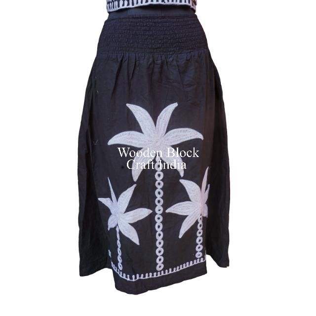 Handmade Modern Girls' Casual Unique Embroidered Floral Print 100% Cotton Knitted A-Line Top Tunic Elastic Waist Breathable