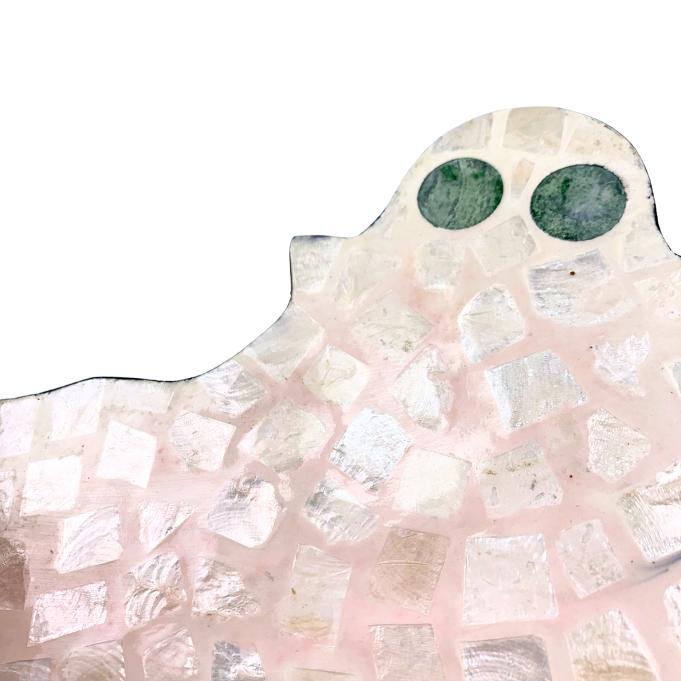 Handmade Modern Halloween Decorative Figurine Ghost Shaped MDF Sculpture Capiz Shell Inlay Mosaic Pattern Wood Wall for Home