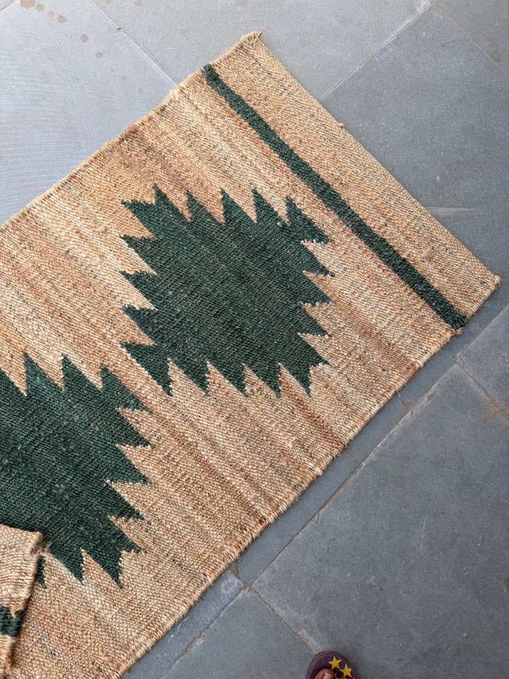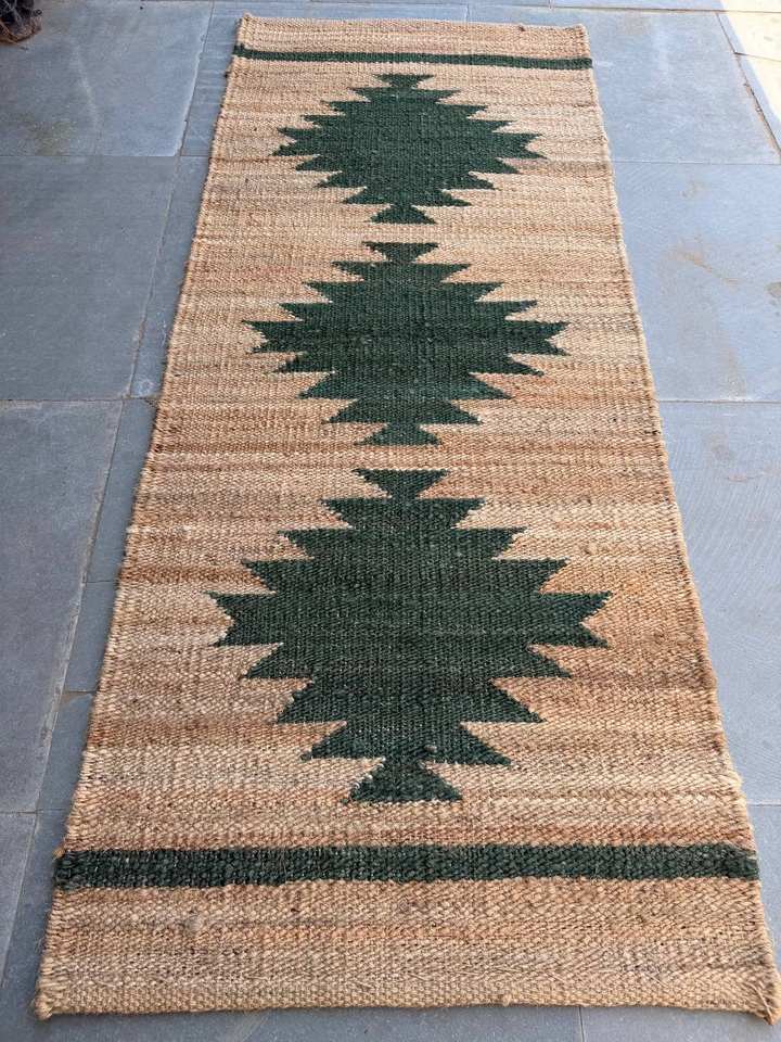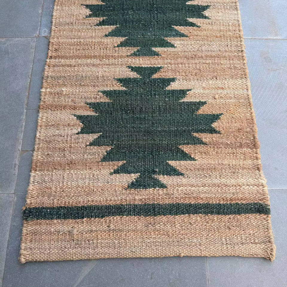 Handmade Modern Hemp Jute Runner Rug Eco-Friendly Washable Geometric Pattern Home Living Room Area Rug