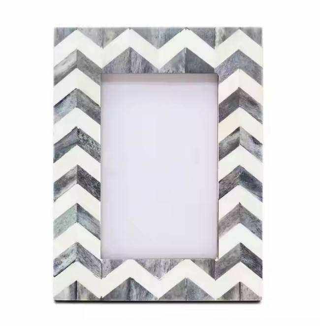 Handmade Modern Photo Frame in Luxury Style Customized with White Bone and Wooden Inlay UV Printed
