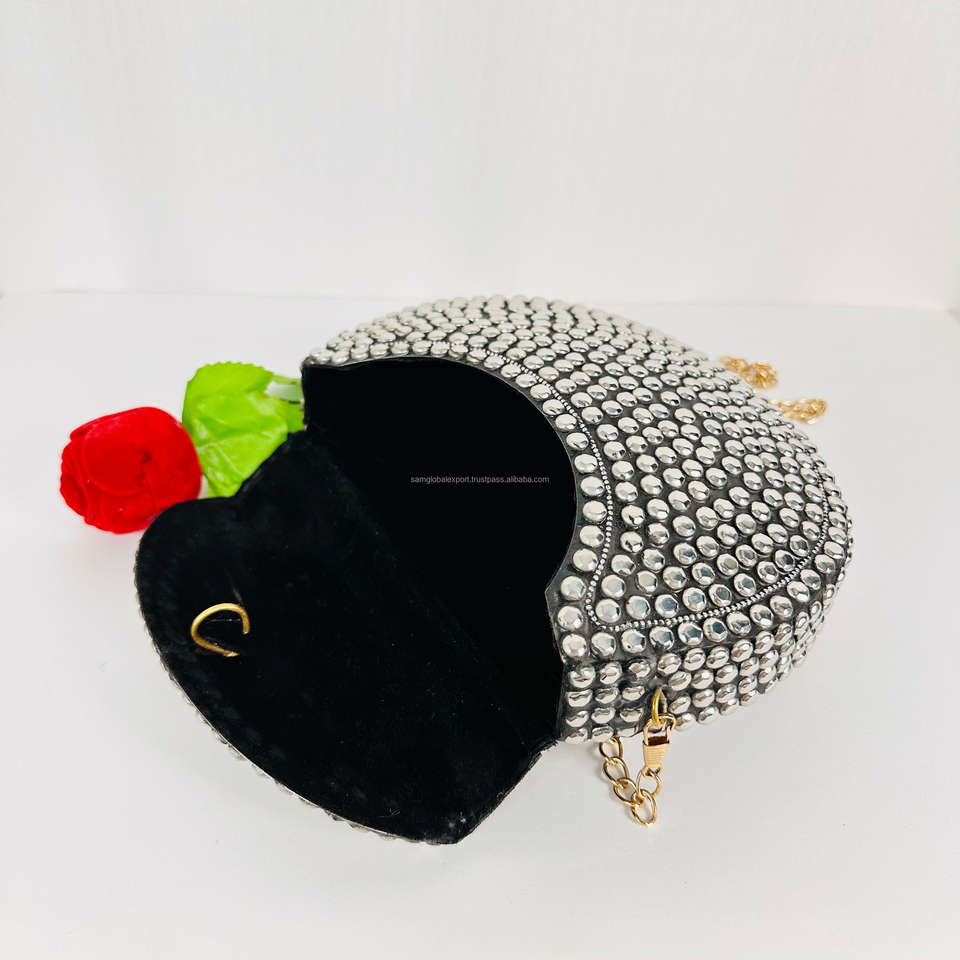 Handmade Modern Polished Silver Dot Evening Party Purse Clutch Stylish Antique Metal Frame Shoulder Bag Handmade Metal Crafts