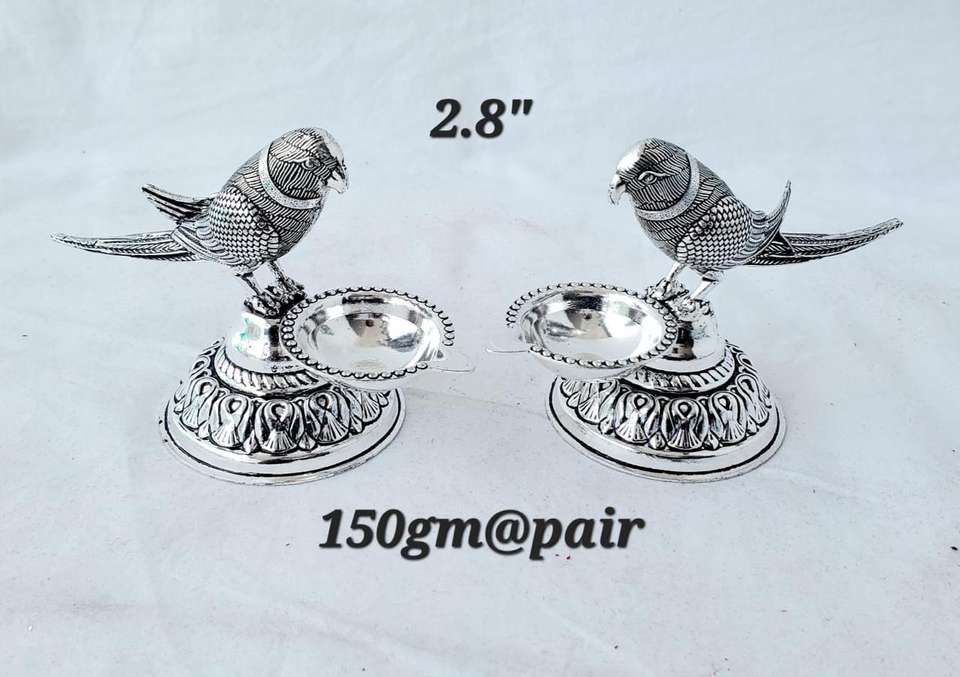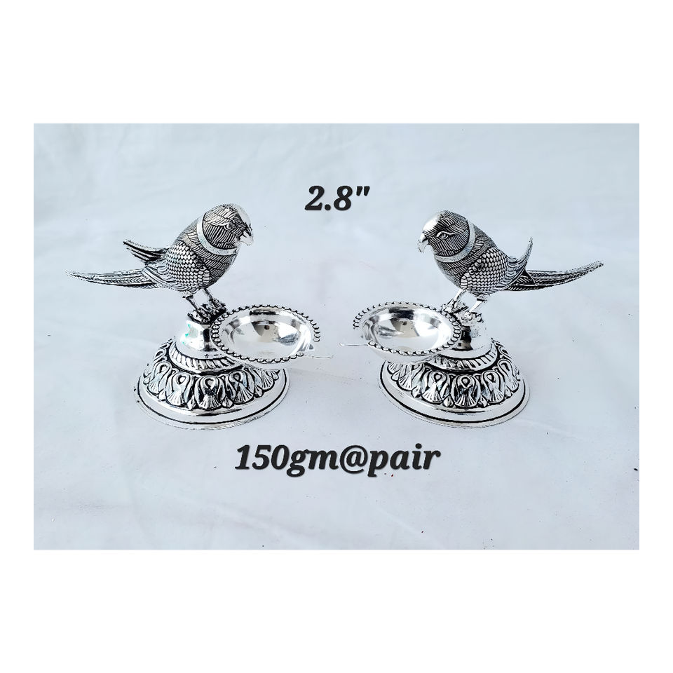 Handmade Modern Pop Art Style Oxidized Silver Parrot Design Lamp Stand Handicraft Pooja Accessory for Weddings Diwali Decorative