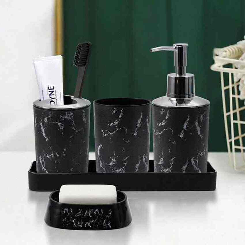 Handmade Modern Resin Bathroom Set Premium Vanity Accessories Soap Dish Toothbrush Holder Tumbler Tray Sleek Stylish Decor