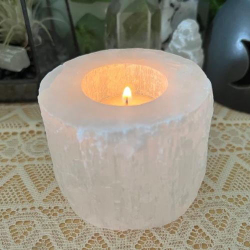 Handmade Modern Selenite Candlestick Holder Elegant Round Tealight Vessel Stylish Home Decor Modern Tealight Jars