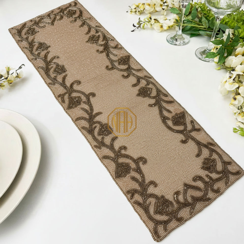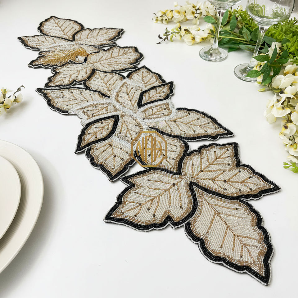 Handmade Modern Style Table Runner and Placemat Custom Floral Pattern Embroidered with Glass Beads