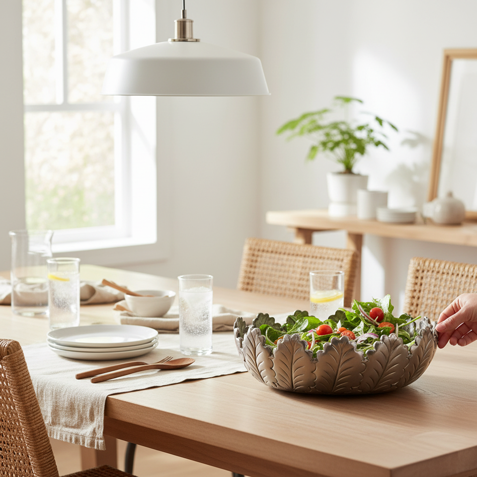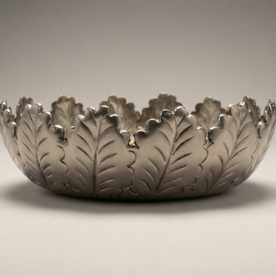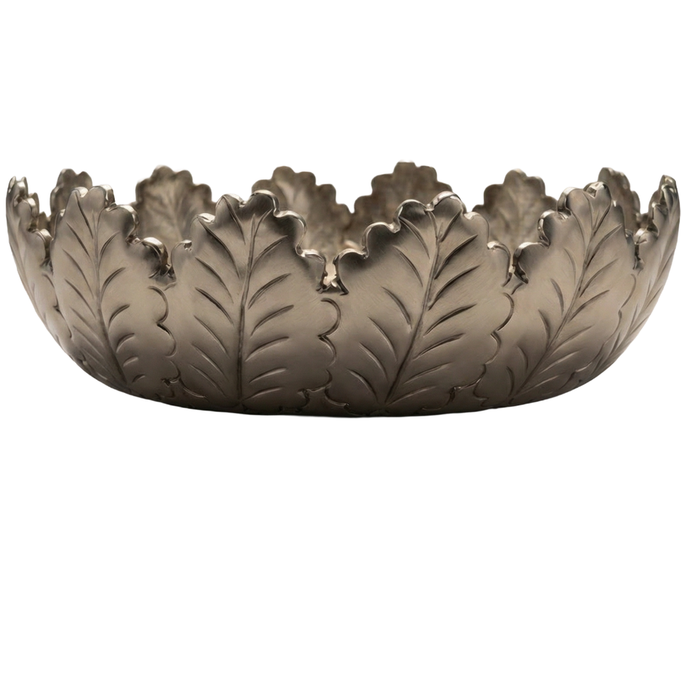 Handmade Modern Travertine Leaf Edge Rope Fruit Decorative Bowl 10 Inch Silver Finish Multi-Functional Ramadan Wedding