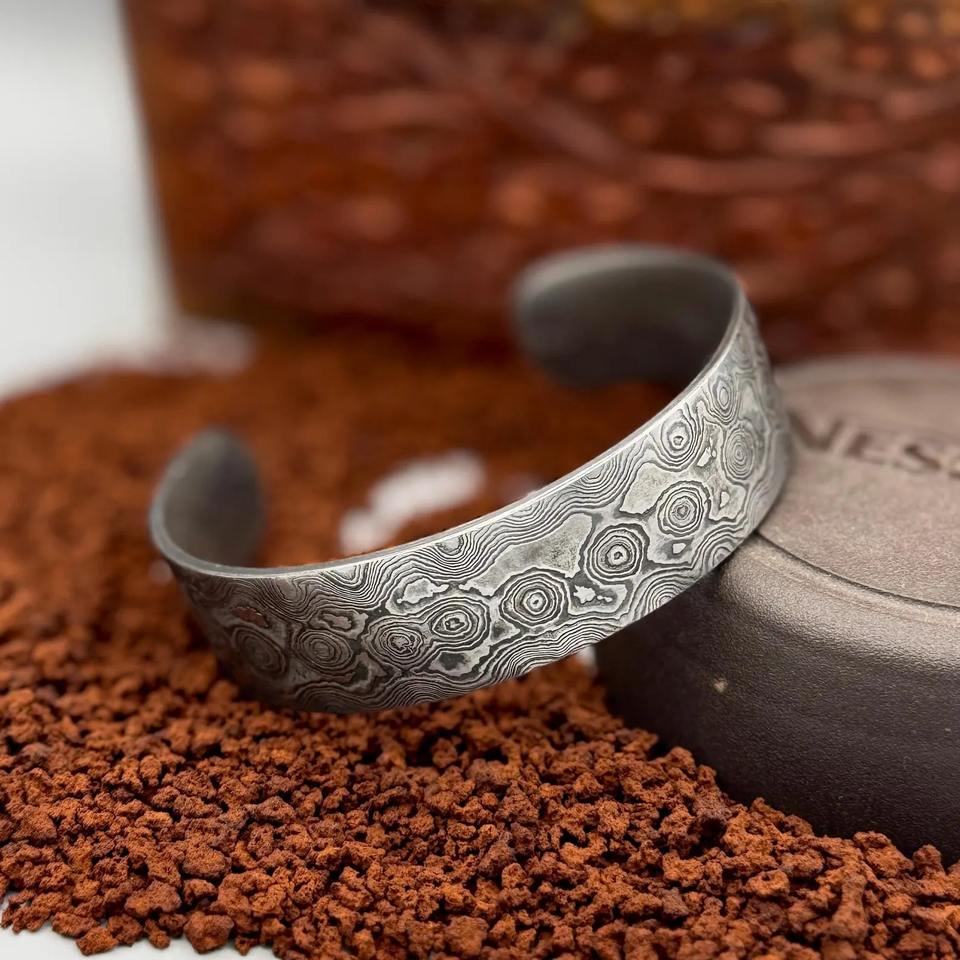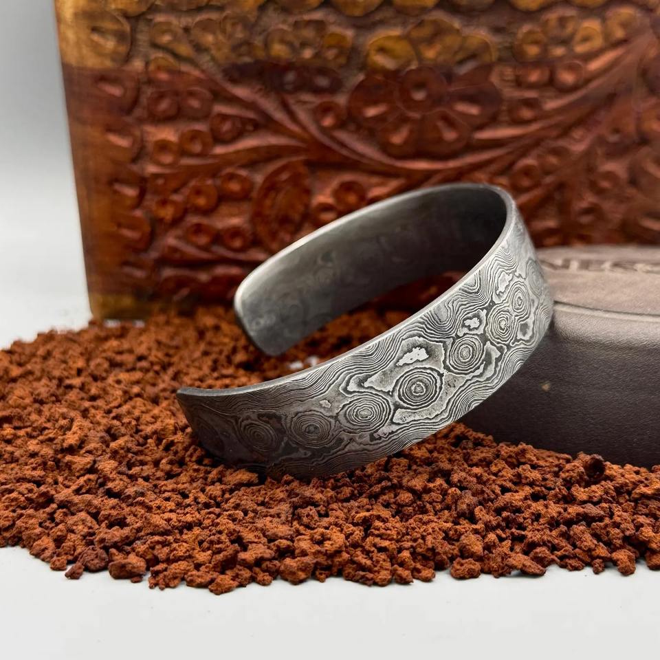 Handmade Modern Viking Damascus Steel Bangle Premium Forged Steel Cuff Bracelet Oath Ring Customizable Anniversary Jewelry Gift