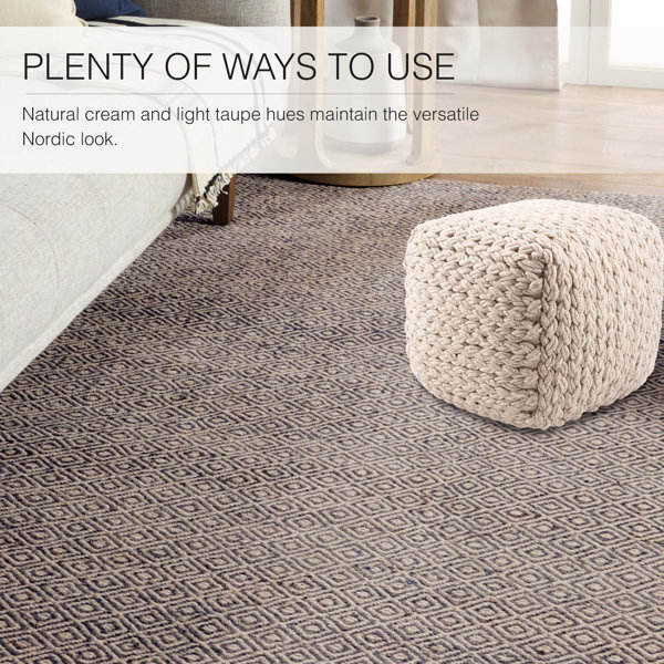 Handmade Modern White Round Macrame Pouf Cover with Custom Design for Home Hotel Wedding Decor
