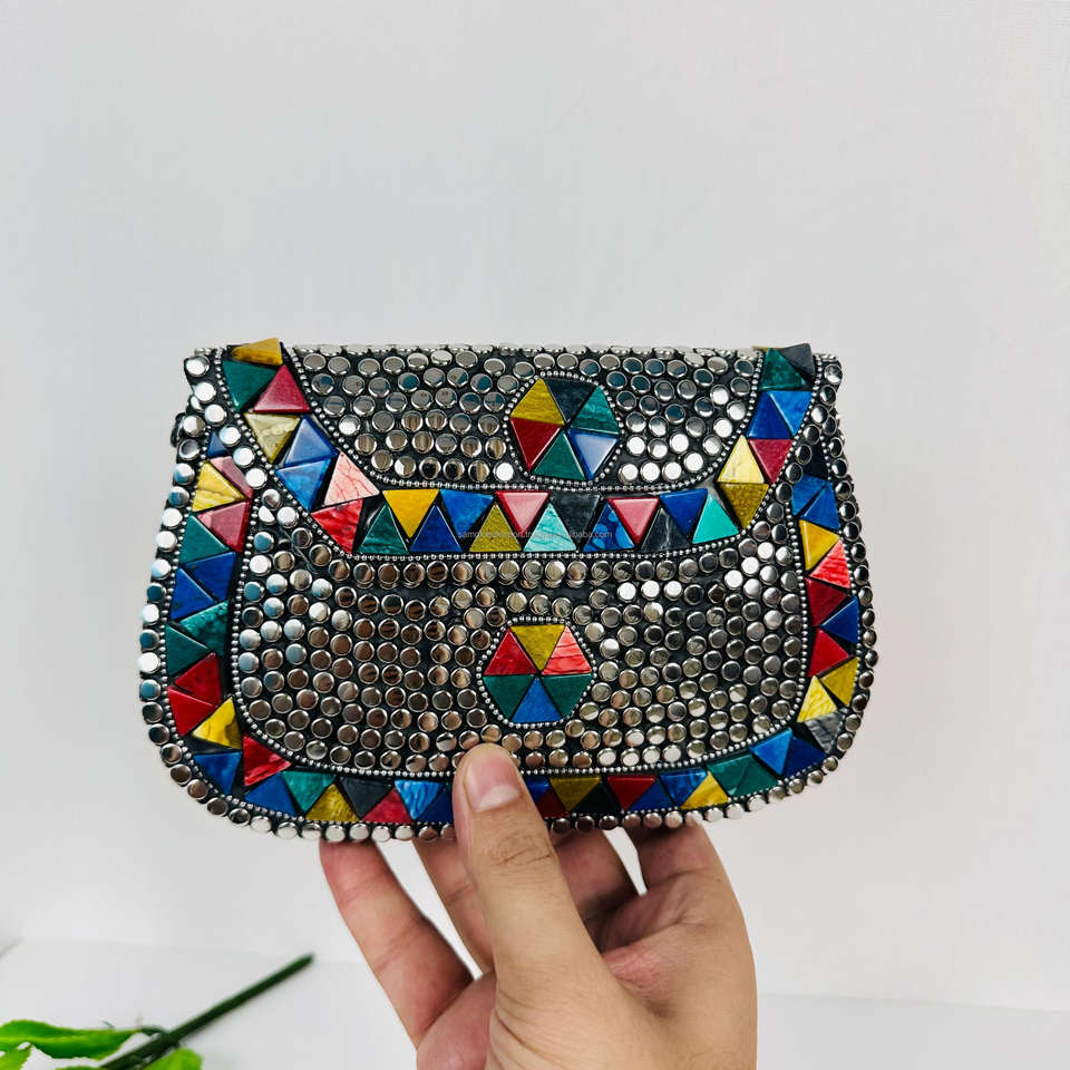 Handmade Modern Antique Women's Elegant Evening Gold-Plated Aluminium Beaded Clutch Bag Polished for Weddings & Parties