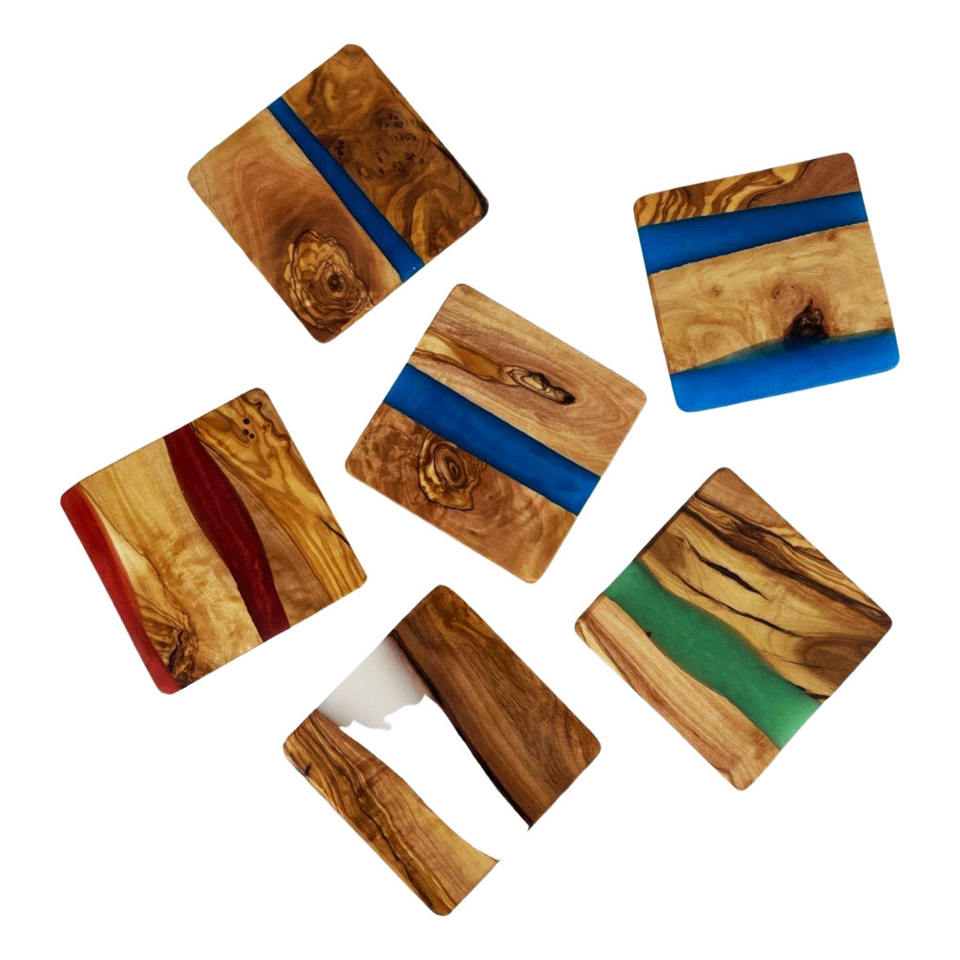 Handmade Modern Wooden Coasters Set Custom Size Epoxy Resin Coffee Table Decorative Art Drink Mat Pads for Tabletop Decoration