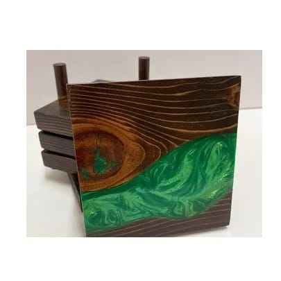 Handmade Modern Wooden Coasters Set Epoxy Resin Coffee Table Decorative Artwork Drink Mat & Pads for Tabletop Decoration