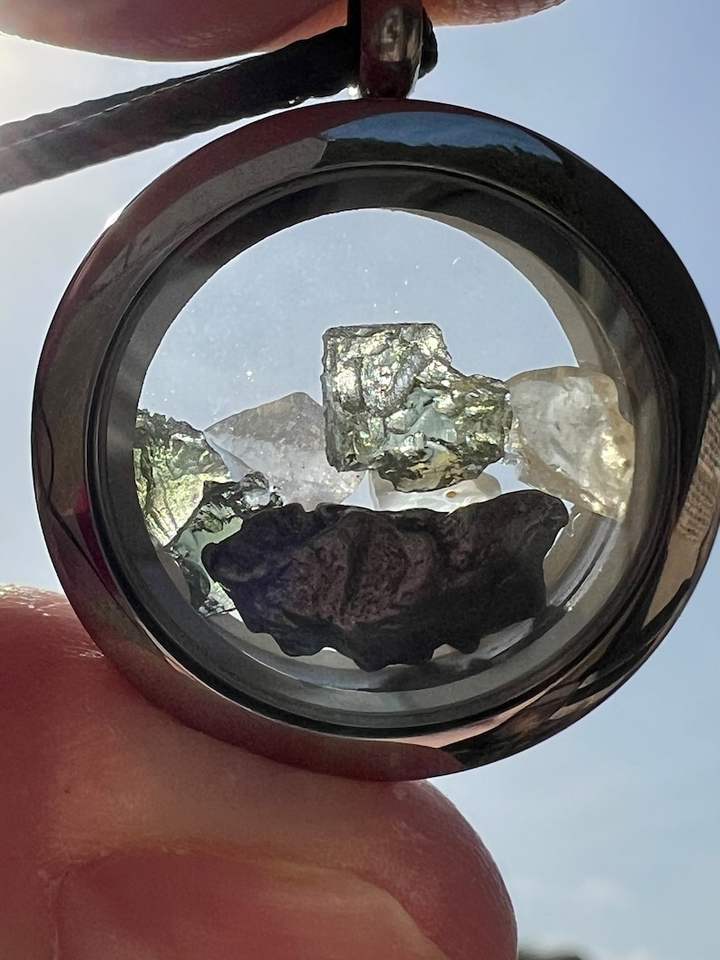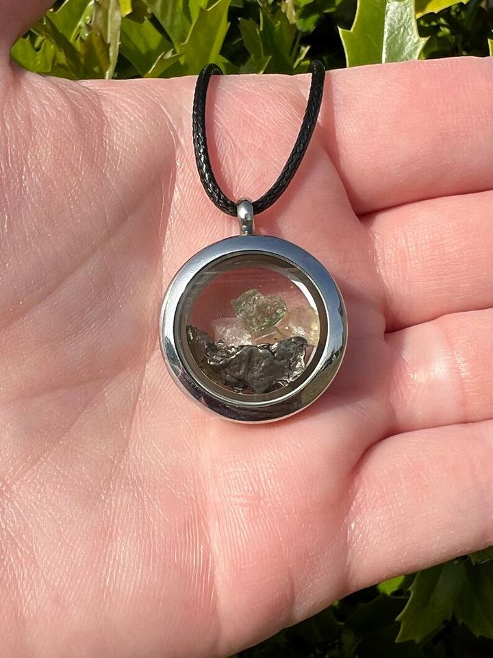 Handmade Moldavite Libyan Desert Glass Pendant Iron Campo del Cielo Floating Steel Locket Transformation Necklace
