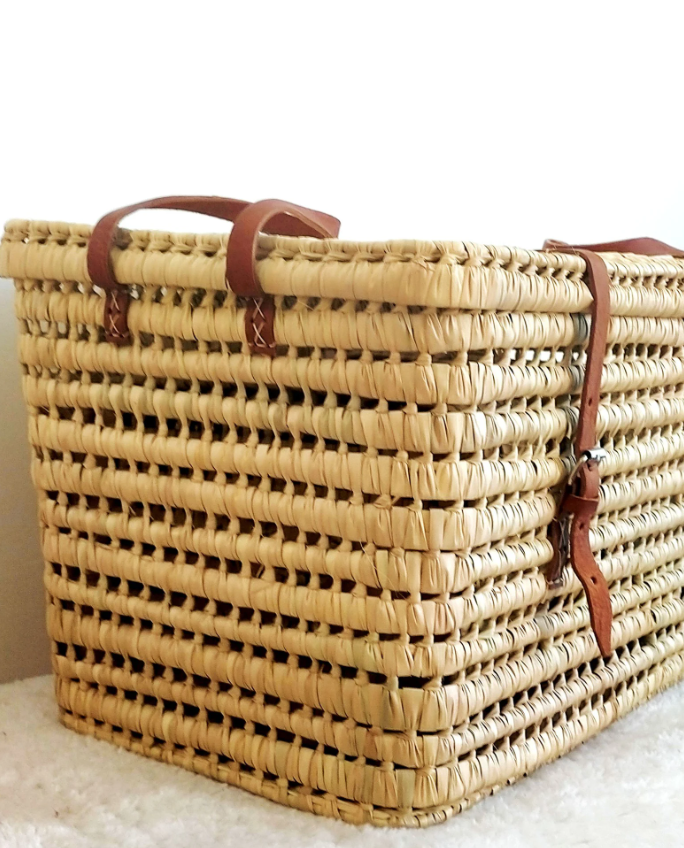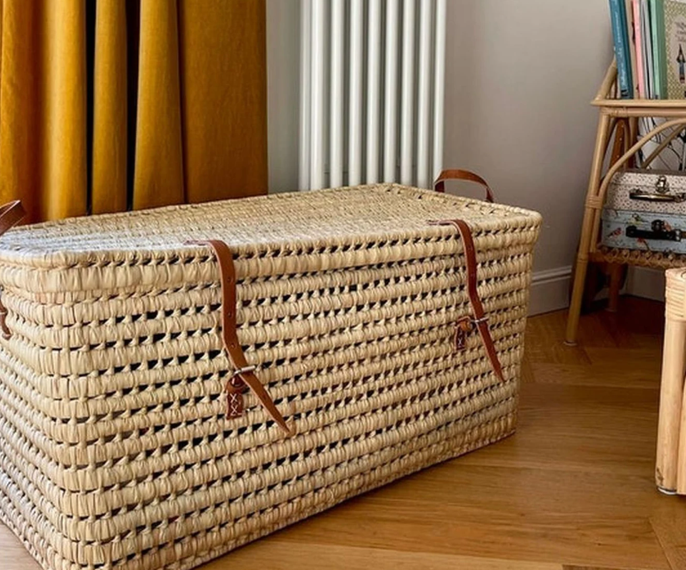 Mode:Large Wicker Square Trunk For Storage With Leather Handles