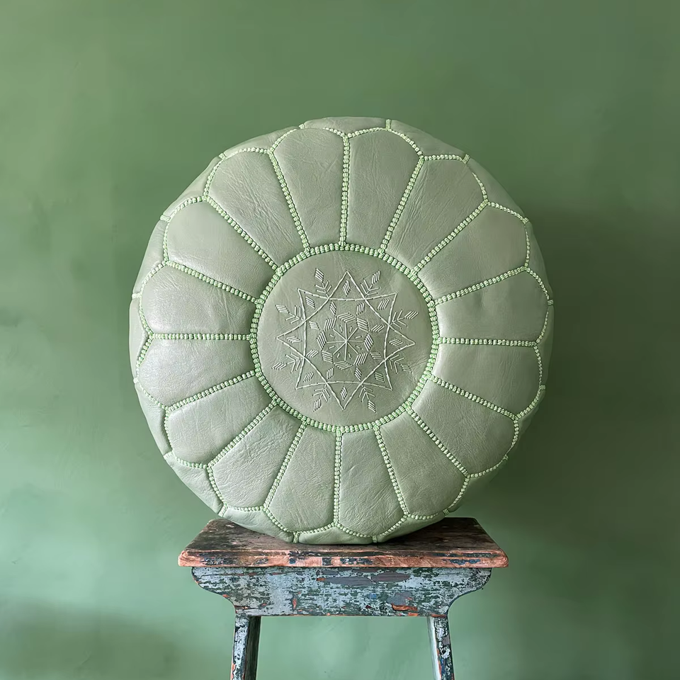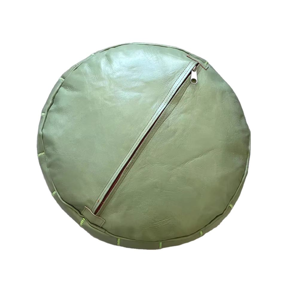 Handmade Moroccan Green Genuine Leather Pouf Ottoman Footstool Living Room Bedroom Sofa Stool Traditional Removable Cover
