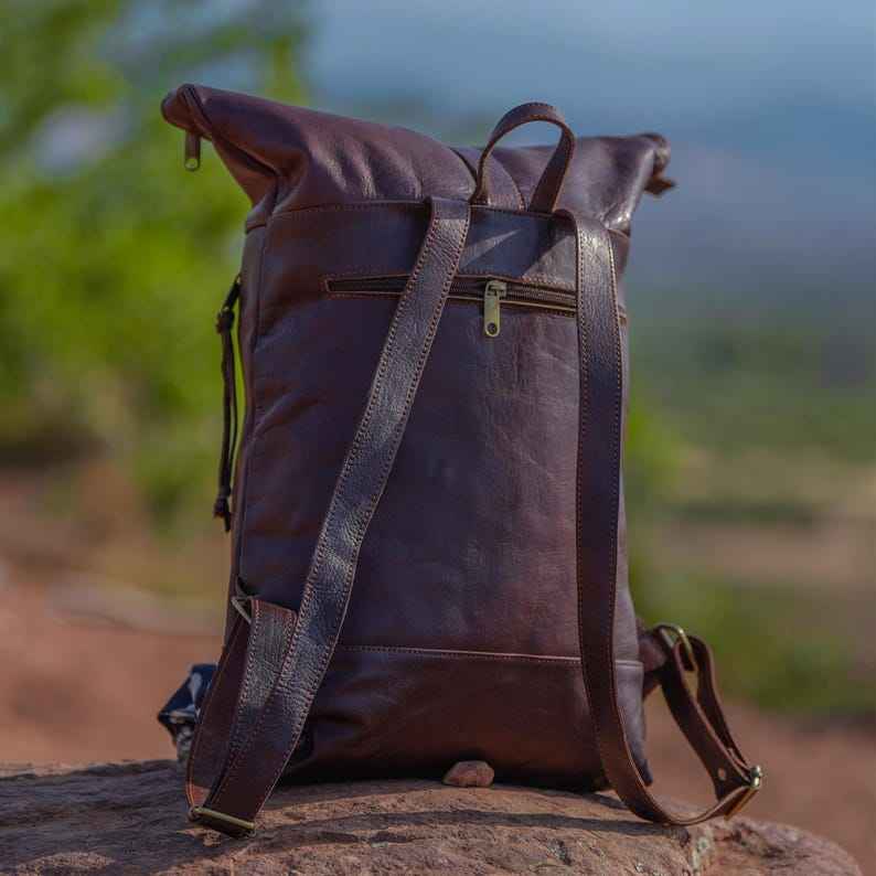 Handmade Moroccan Leather Backpack Brown Roll-top Travel Bag For Men & Women Durable Vintage Style LRTB-0045