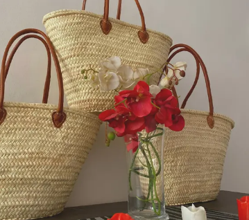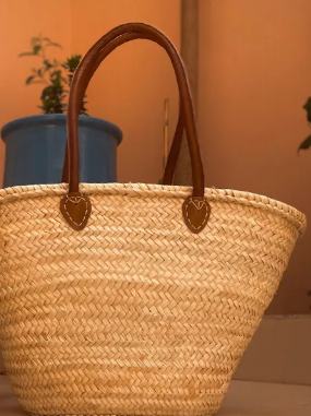 Handmade Moroccan Straw Tote Bag: Vegan Leather Handle, Summer Beach Basket