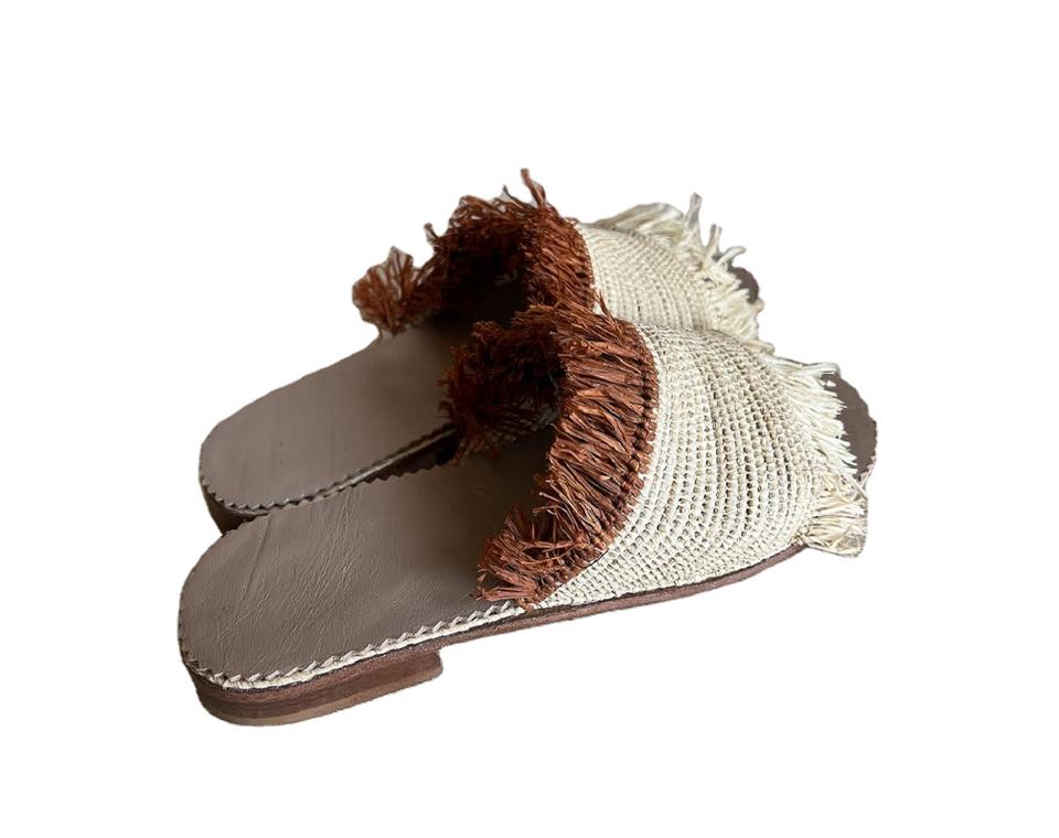 Handmade Moroccan Summer Slipper Shoes Light Weight Genuine Leather with Raffia Cushioning and Massage Features