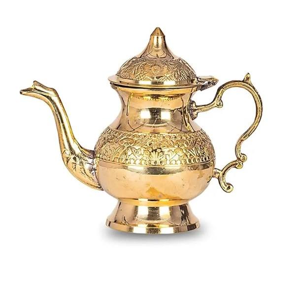 Handmade Moroccan Tea Pot With Brass Plated Copper for All Occasions With Mediterranean Design