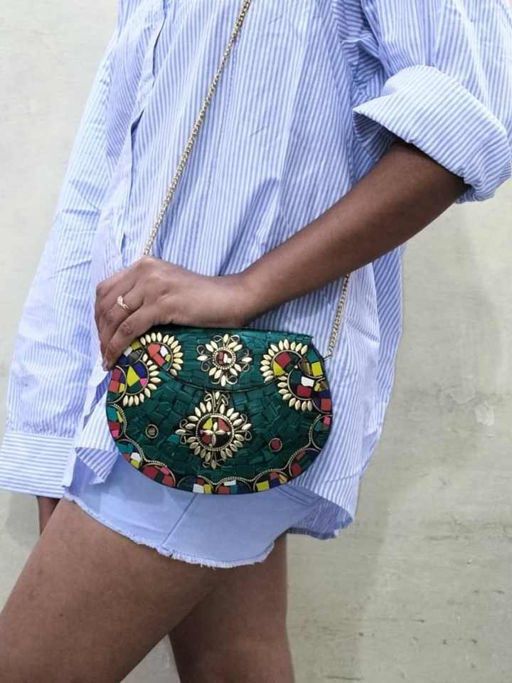 Handmade Mosaic Clutch Bag Indian Ethnic Crossbody Purse Boho Resin Sling Bag Evening Shoulder Bag for Women