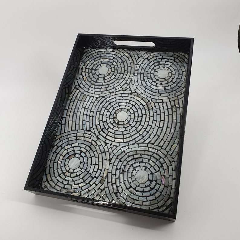 Handmade Mother Pearl Rectangle Tray Personalized Natural Crafts for Mother's Gift Breakfast Drinks Snack Coffee Table House