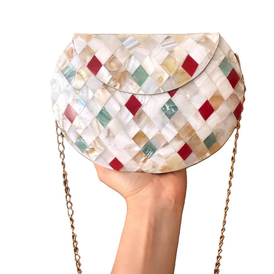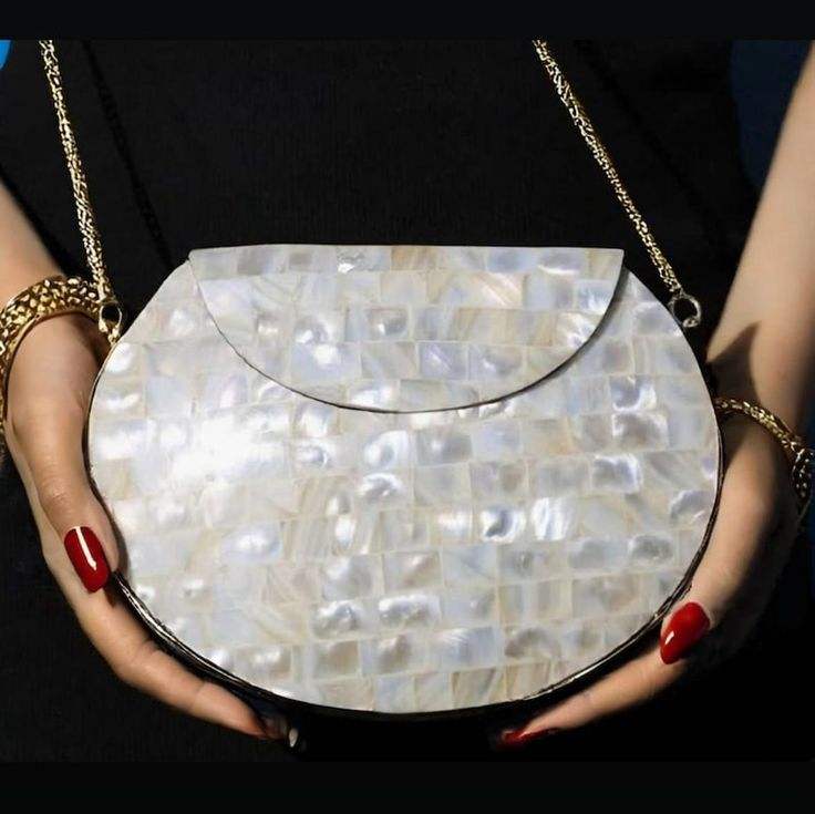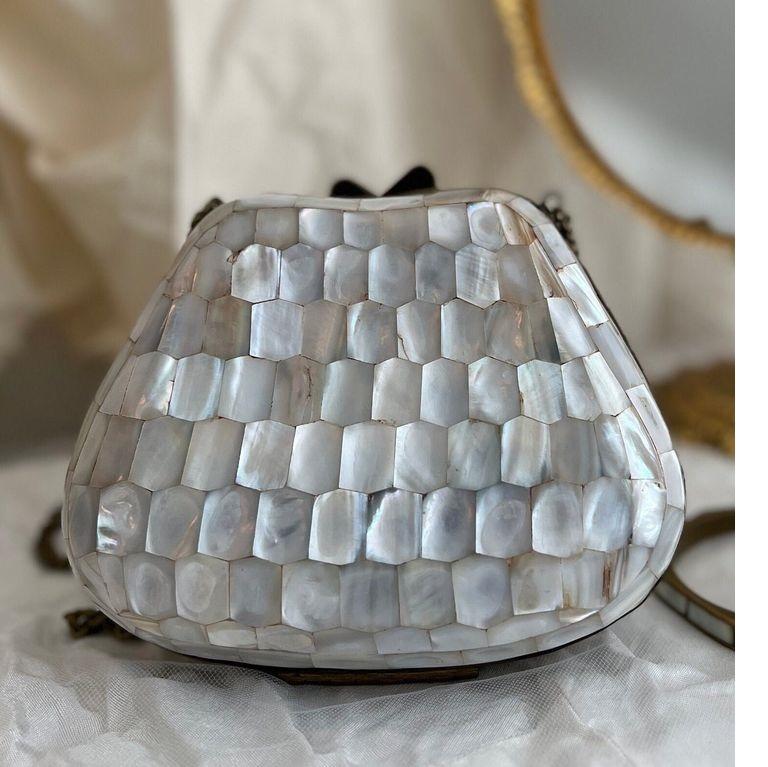 Handmade Mother of Pearl Clutch Bag for Women Elegant Mother of Pearl Inlay Evening Clutch with Intricate Details