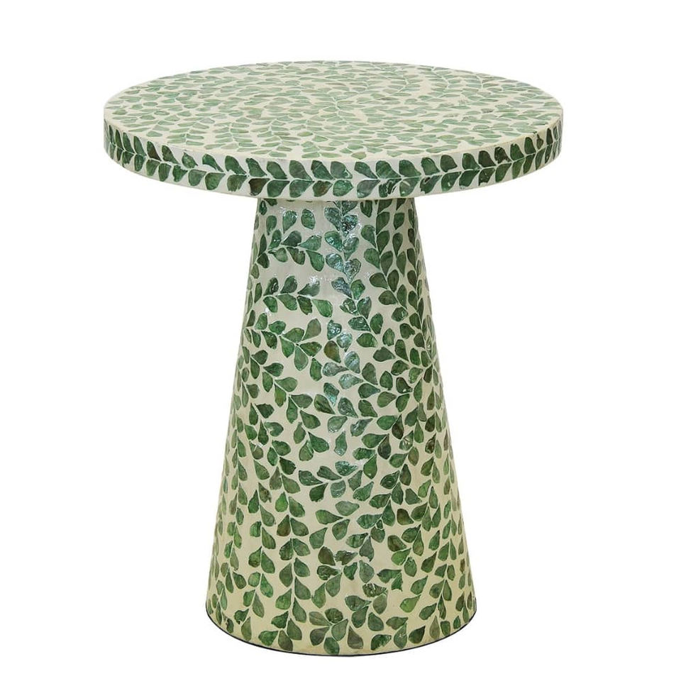 Handmade Mother of Pearl Side Table With Green Leaf Pattern Capiz Inlay Coffee Table for Living Room MOP End Table for Hotel
