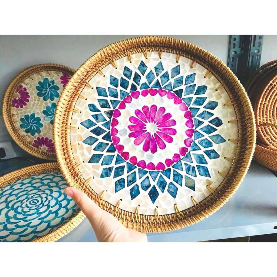 Handmade Mother peal Storage Baskets Small Fruit Tray and Dinner Plate Weaved Bamboo Sushi Boat Home Decor From Vietnam