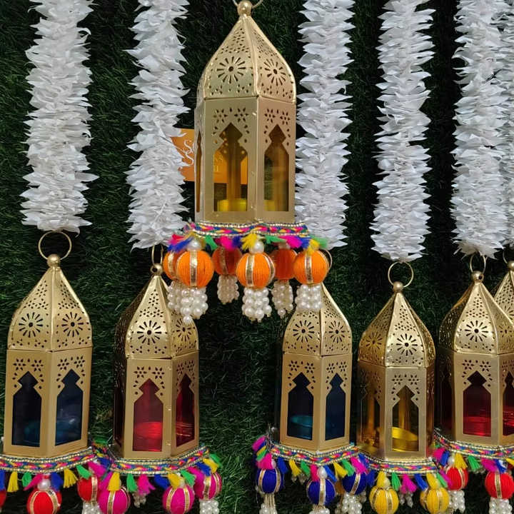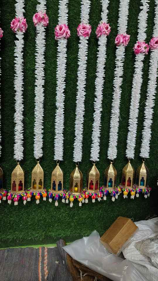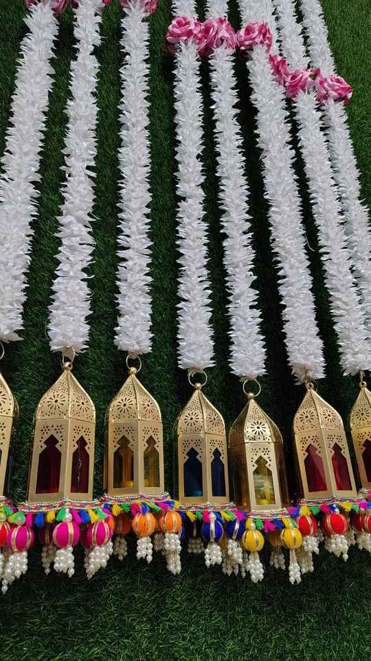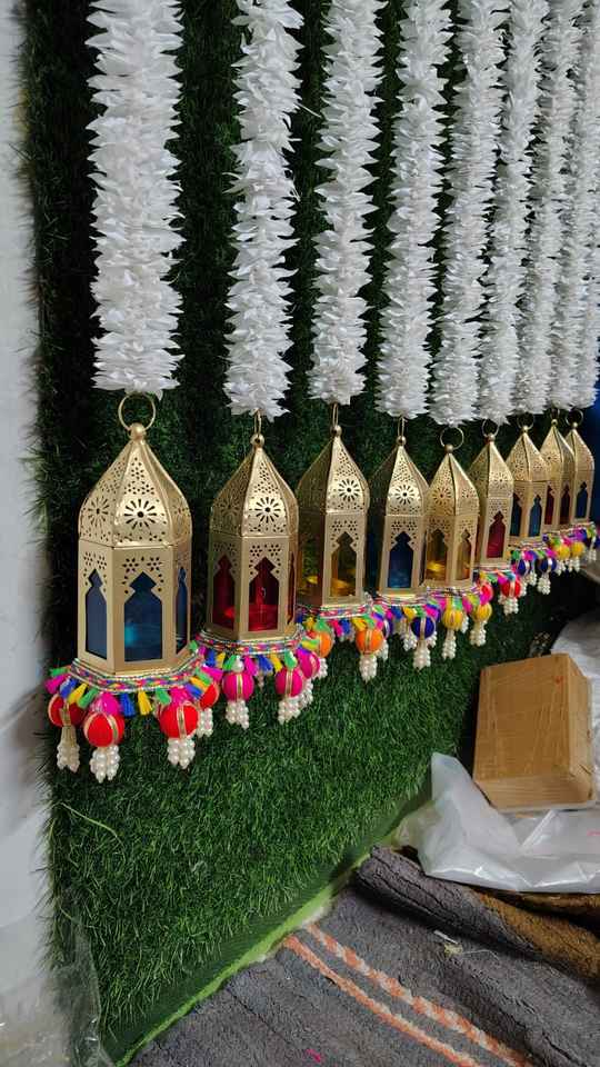 Handmade Mughal Style Metal Lantern with Jasmine Rose Garland Hanging Floral Lantern Diwali Eid Ramadan Wedding Stage Backdrop