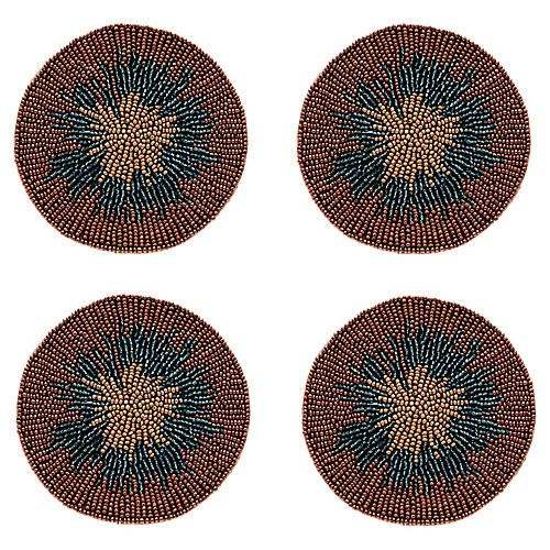 Handmade Multi Color Flower Shaped Beaded Tea Coaster for Table Home Bar Decoration Housewarming Gift Cup Mats at Discount Price