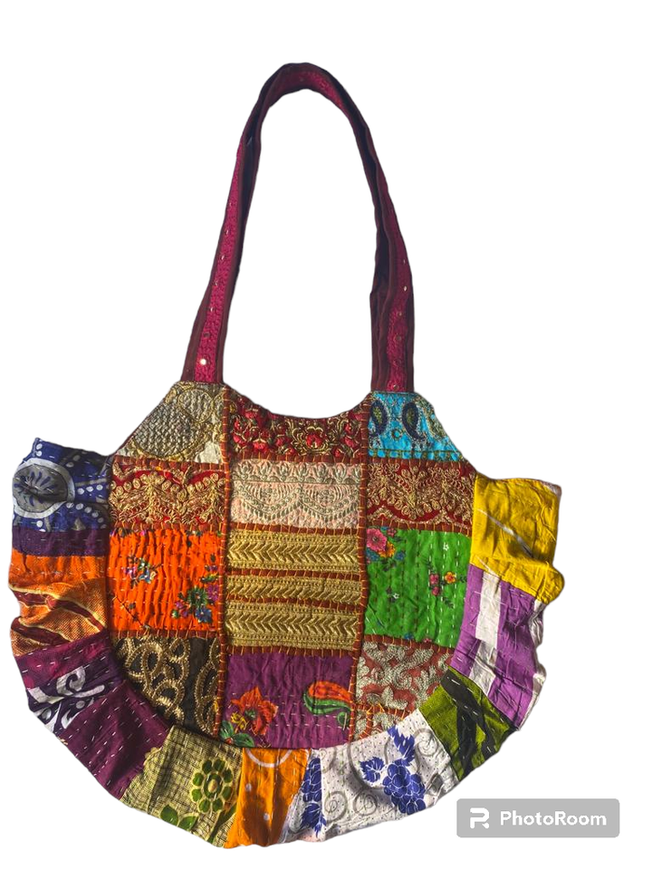 Handmade Multi Coloured Designer Candy Quilted PU Leather Tote Eco Friendly Banjara Tribal Fashion Single Shoulder Bag
