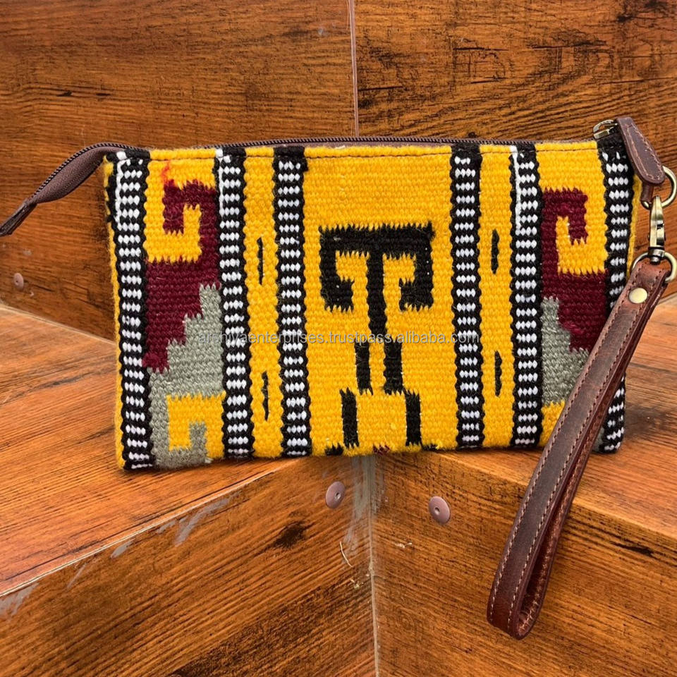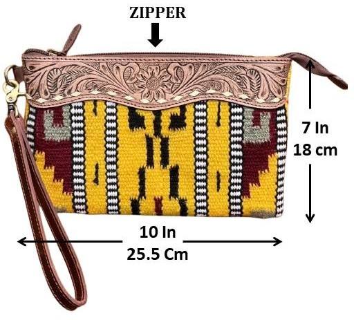 Handmade Multi Saddle Blanket Purse With Tooled Leather Western Style Genuine Leather Wristlet Clutch Luxury Wallet Gift for Her