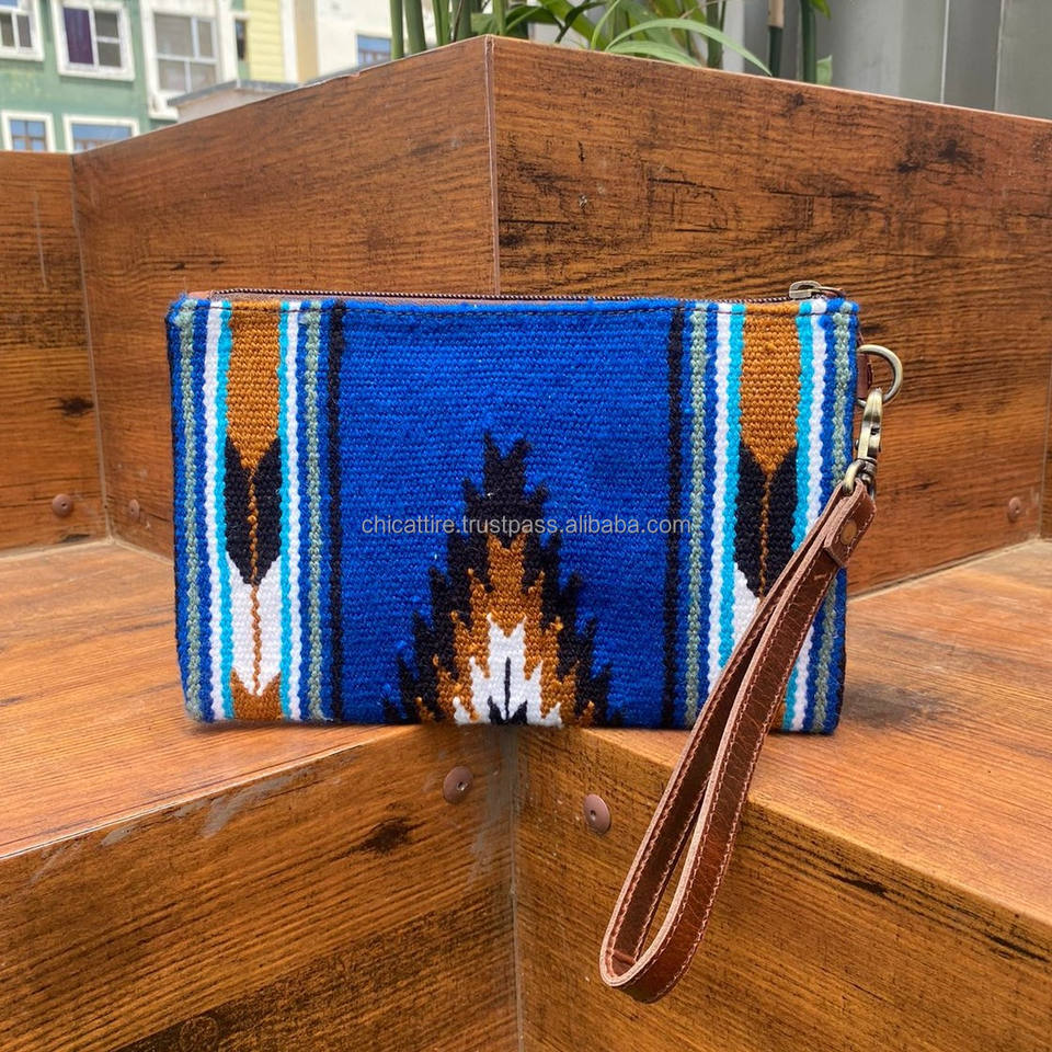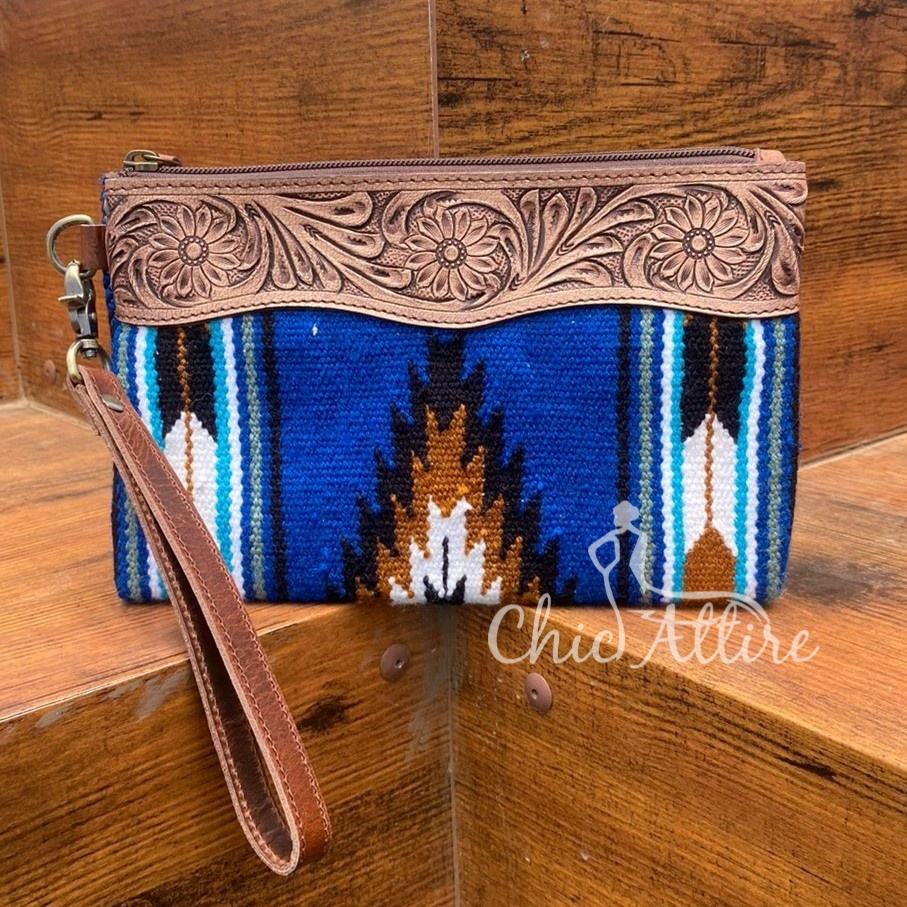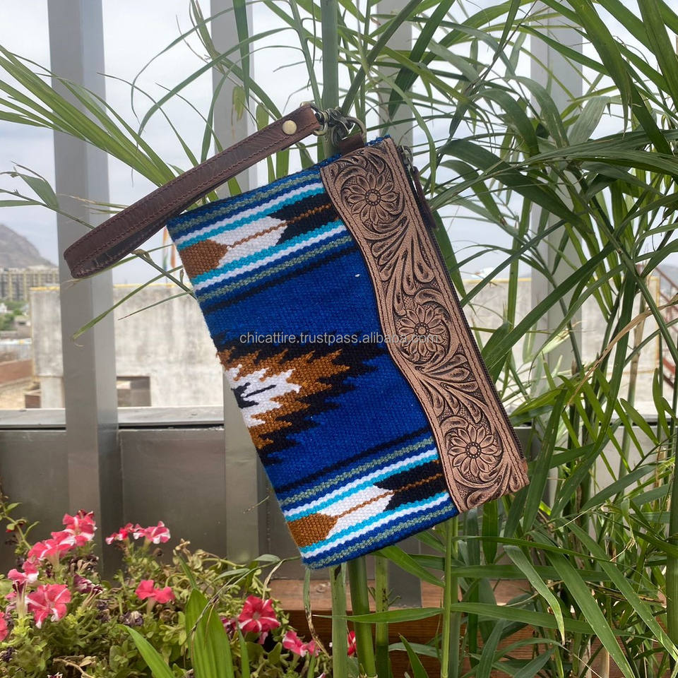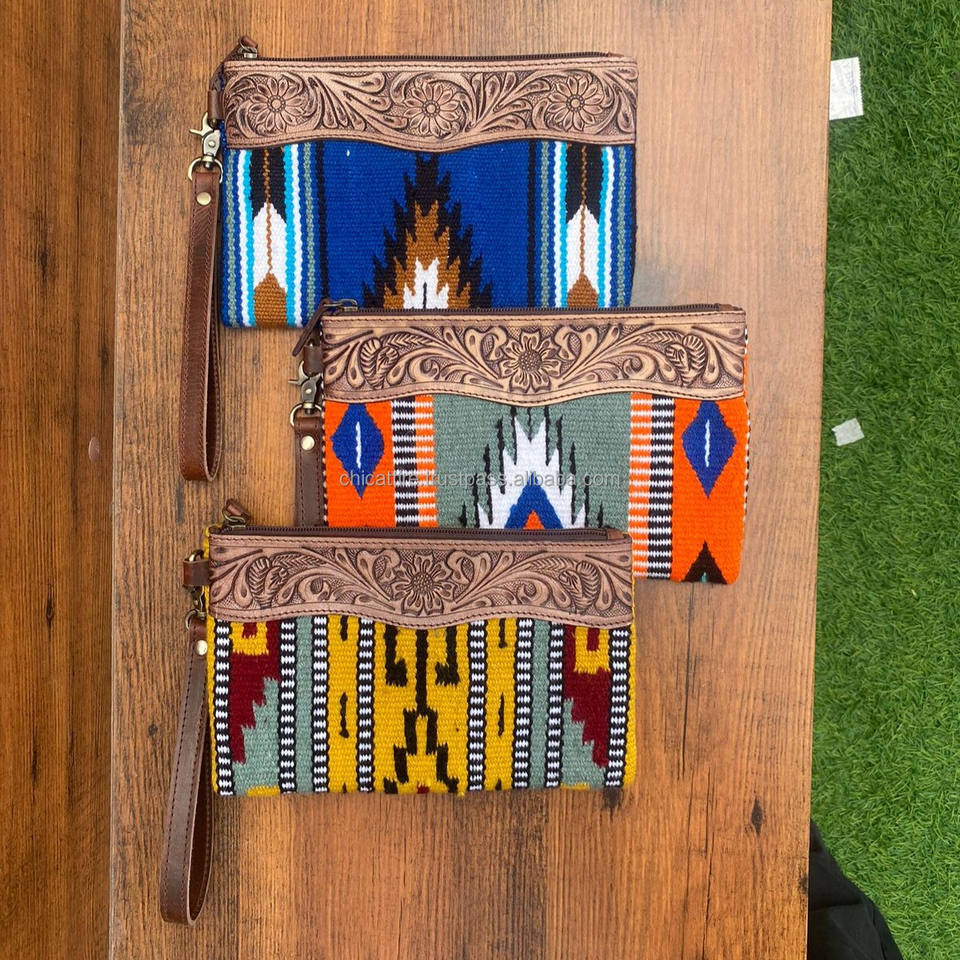 Handmade Multi Saddle Blanket Purse With Tooled Leather Western Style Genuine Leather Wristlet Clutch Luxury Wallet Gift for Her