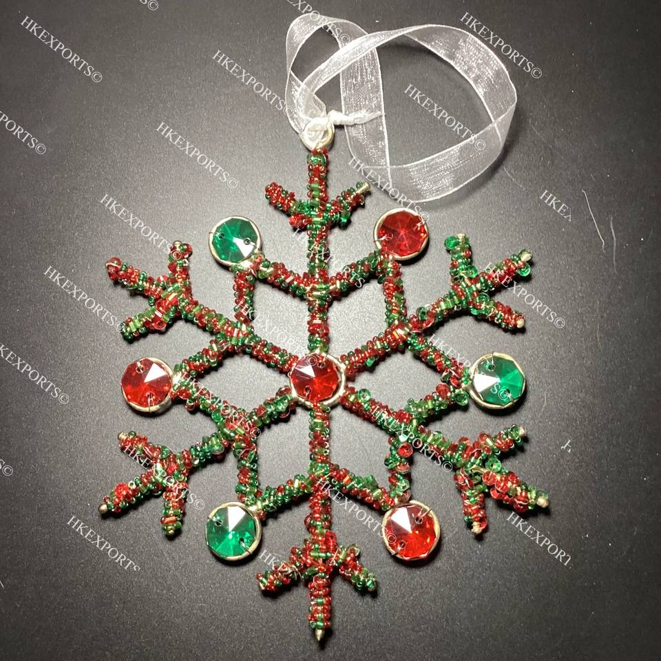 "Handmade Multicolor Christmas Beaded Hanging Ornaments Festive Holiday Decorations Handcrafted Beaded Christmas Tree Ornaments