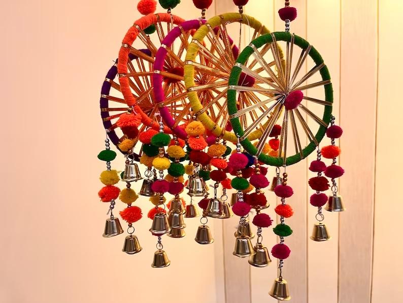 Handmade Multicolor Dream Catchers for Halloween Decor for Mehndi Party Backdrop and Home Decor with Pom Pom Gota Hangings