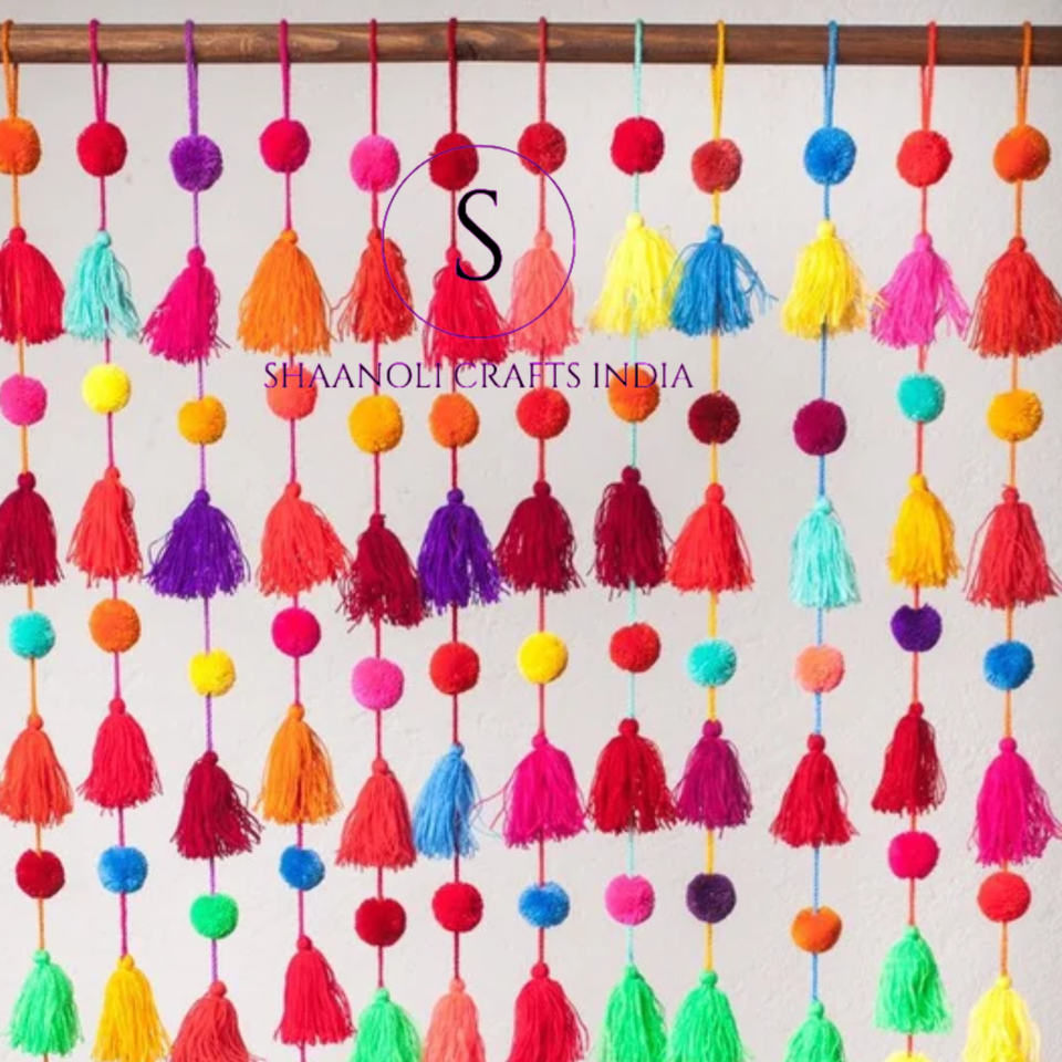 Product name:Handmade Multicolor Mexican Pom Pom Tassel Garland