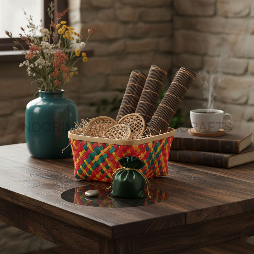 Handmade Multicolored Bamboo Tub Basket Vibrant Woven Storage Organizer Multi Purpose Utility Bulk Supplier Factory Exporter