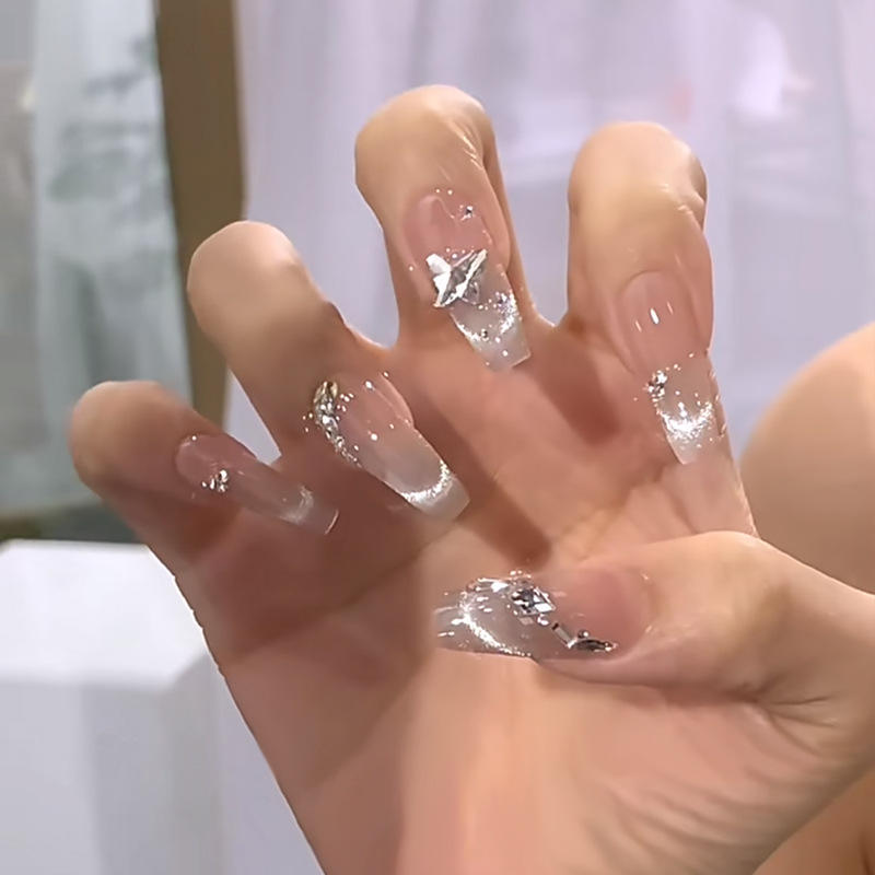 Handmade Nails Nude Skin Smile Cat Eye French Manicure High-end Wearable Nail Tips Finished Wholesale